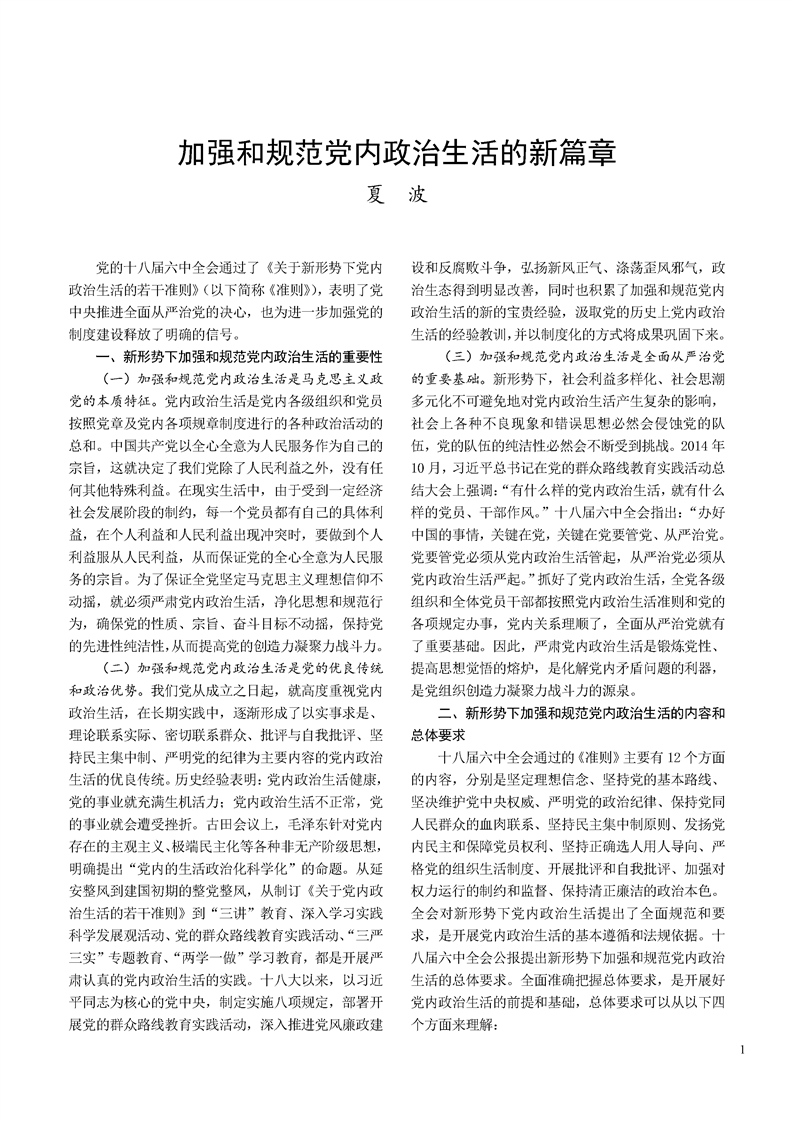 夏波:加强和规范党...