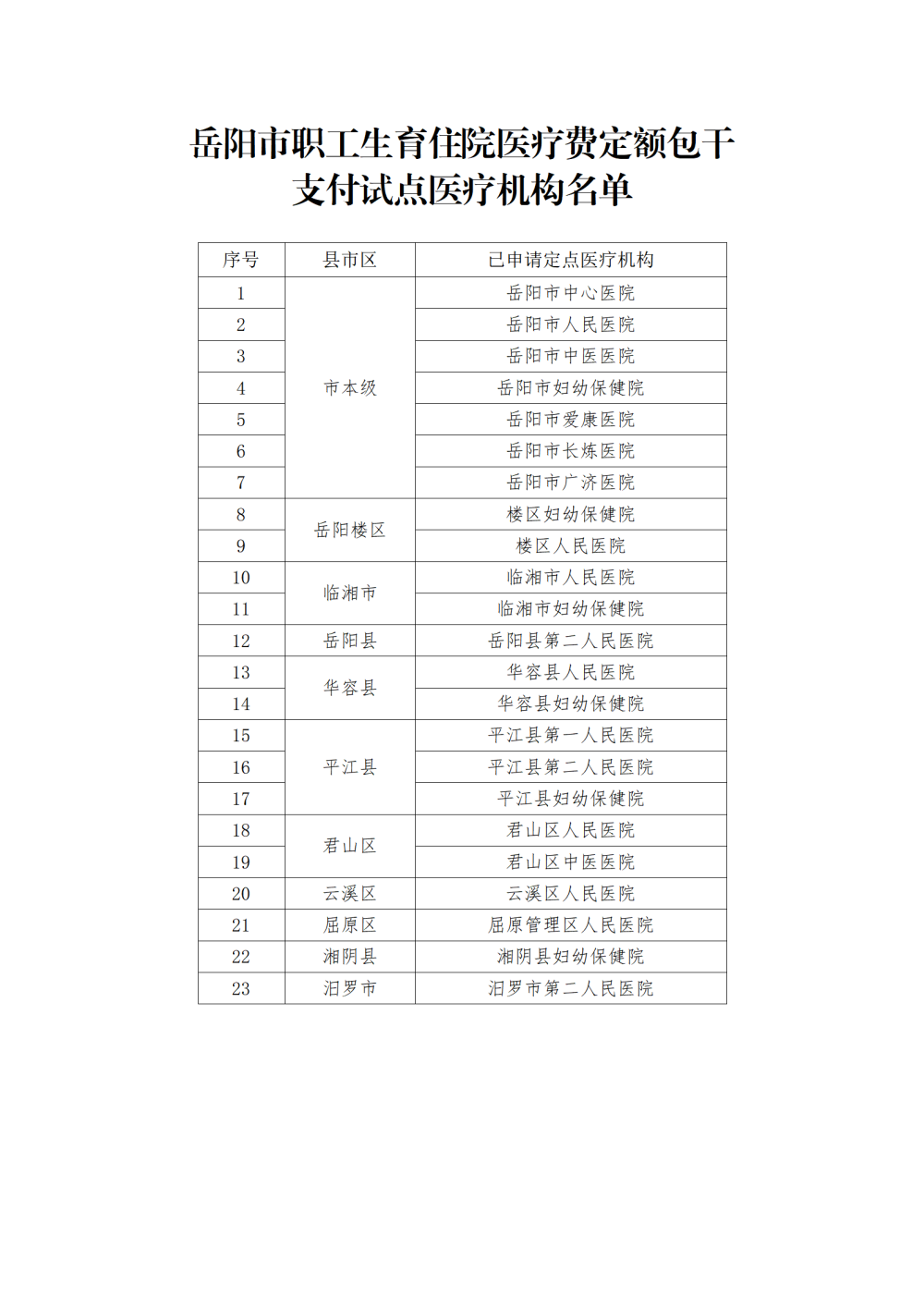 岳阳市职工生育保险住院医疗费用定额包干支付试点政策解读