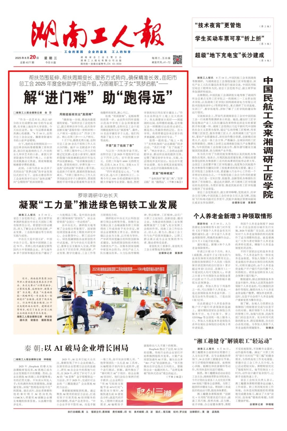 《湖南工人报》头版头条报道:岳阳市总工会为困难职工子女“筑梦启航”—— 解“进门难” 助“跑得远”