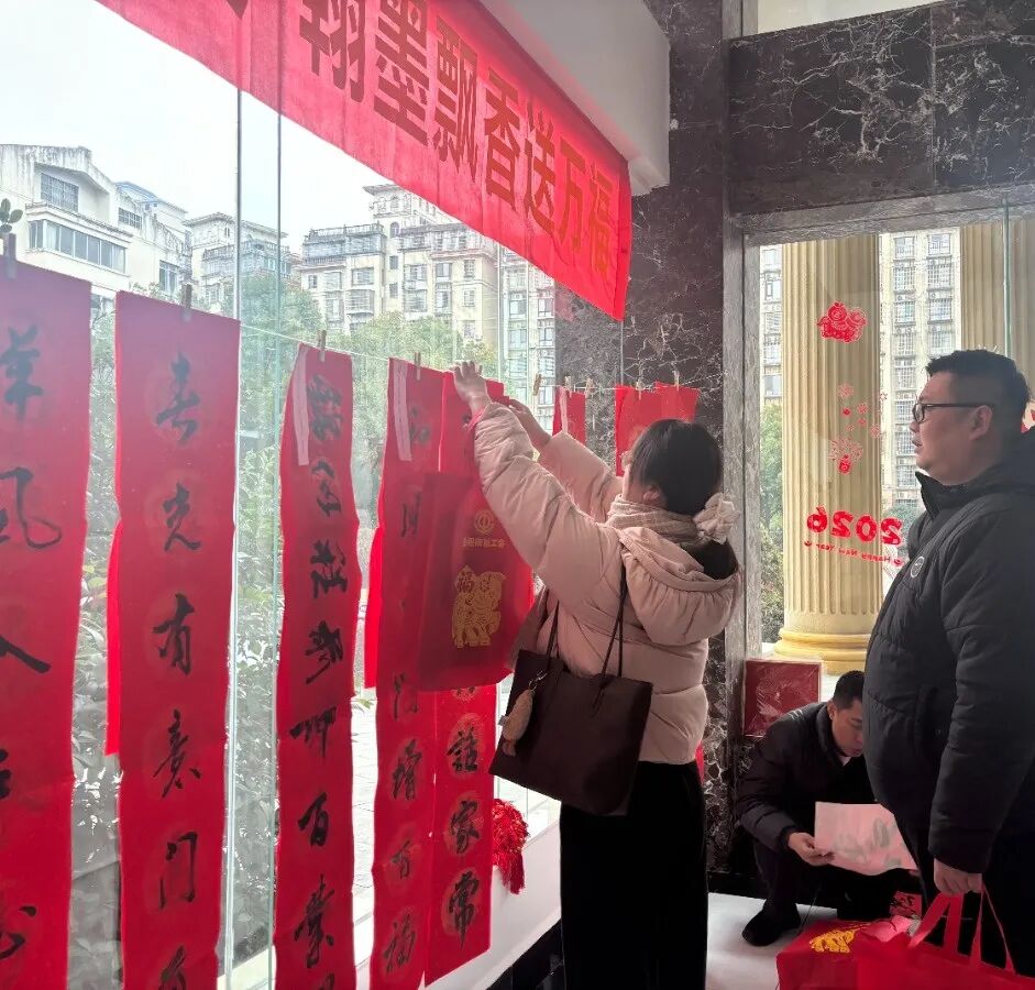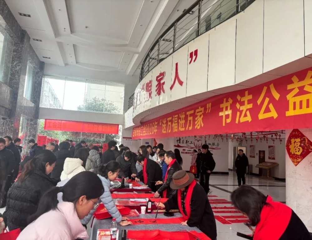 近年来,岳阳市各级工会持续深入开展“送万福、进万家”书法公益活动,深入企业车间、工地园区、街道社区,为职工群众、产业工人、新就业形态劳动者等现场写春联、送祝福。活动不仅丰富了职工精神文化生活,营造了欢乐祥和的节日氛围,也让广大劳动者真切感受到了工会“娘家人”的温暖与关怀。