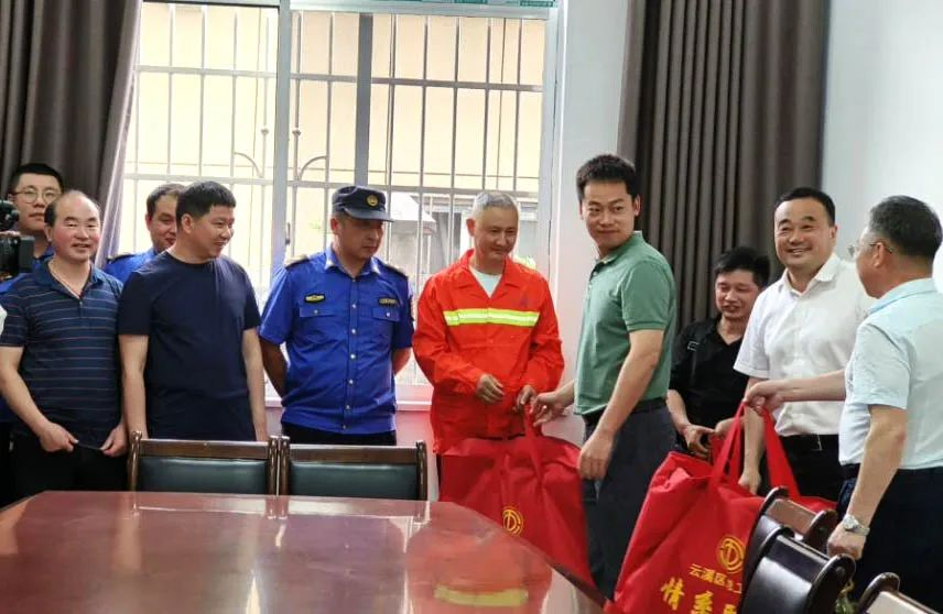 5月26日,区委书记刘正仁和区委副书记周玉萍、刘勇等分头率队走访慰问职工,赋能“好工人·向未来”。来到岳阳绿色化工高新区党群中心与城南幼儿园,刘正仁同现场劳模工匠、一线产业工人、城管环卫代表亲切交流,对他们在各自岗位上作出的努力给予肯定,向他们为云溪各领域作出的贡献表示感谢,并送上慰问物品,叮嘱他们注意劳逸结合,立足自身岗位,坚持真抓实干,积极发扬劳动精神,助推云溪经济社会高质量发展。