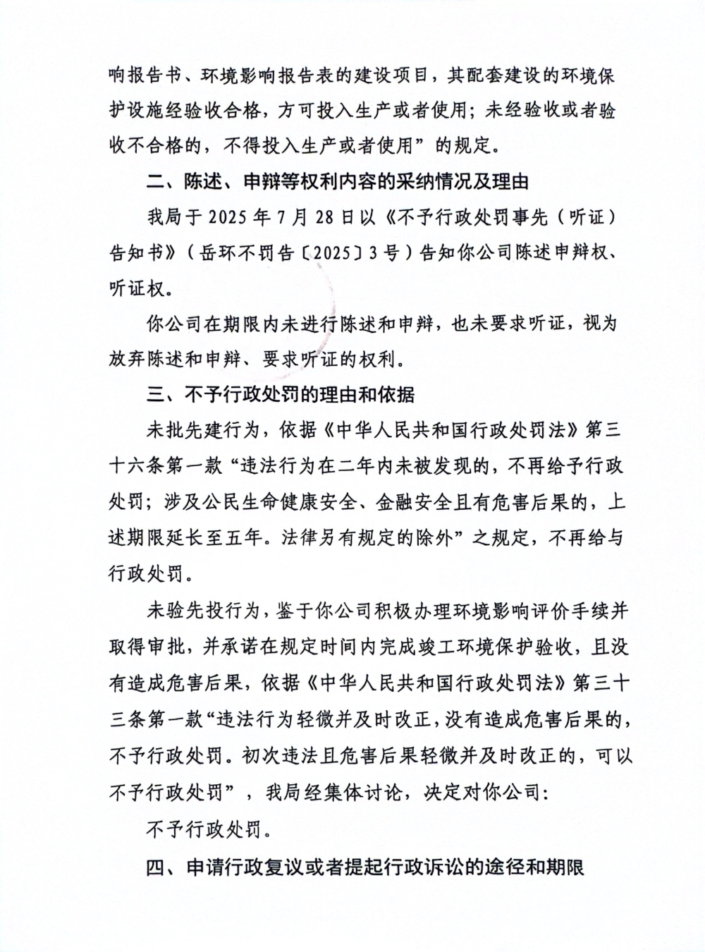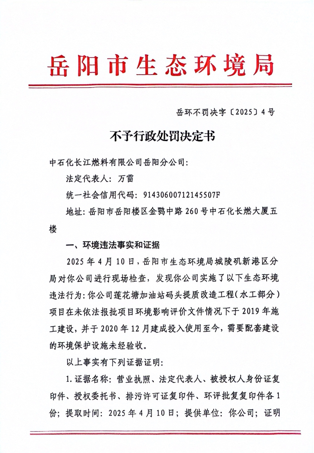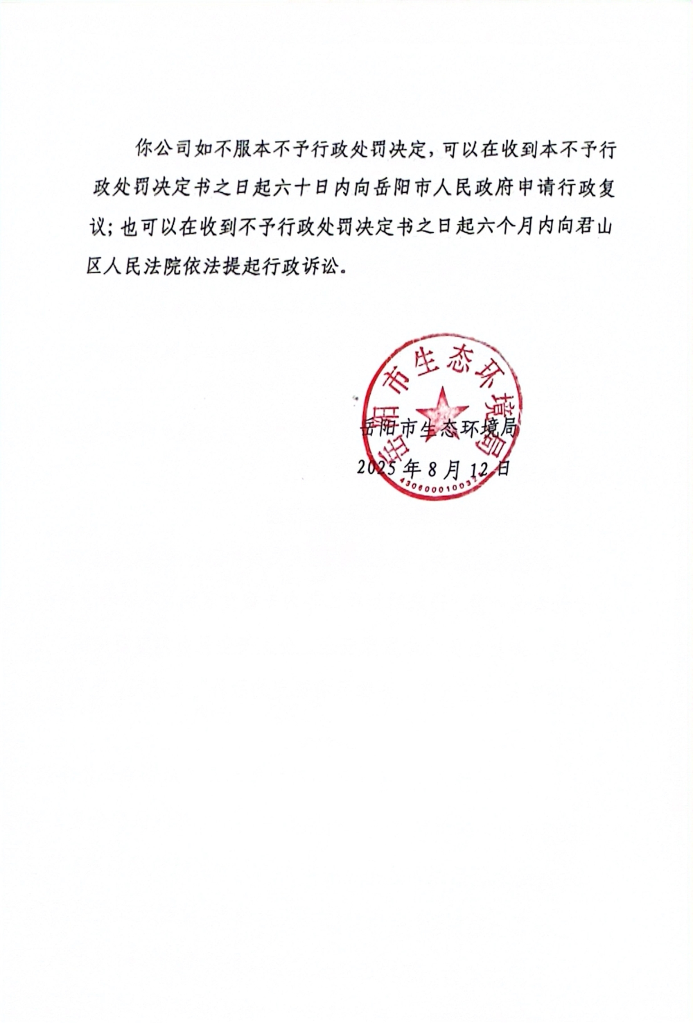 岳环不罚决字〔2025〕4号