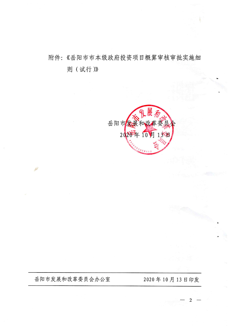 岳阳市发展和改革委员会关于印发《岳阳市市本级政府投资项目概算实施细则(试行)》的通知