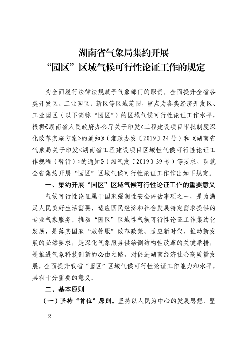 湖南省气象局办公室关于印发《湖南省气象局集约开展“园区”区域气候可行性论证工作的规定》的通知