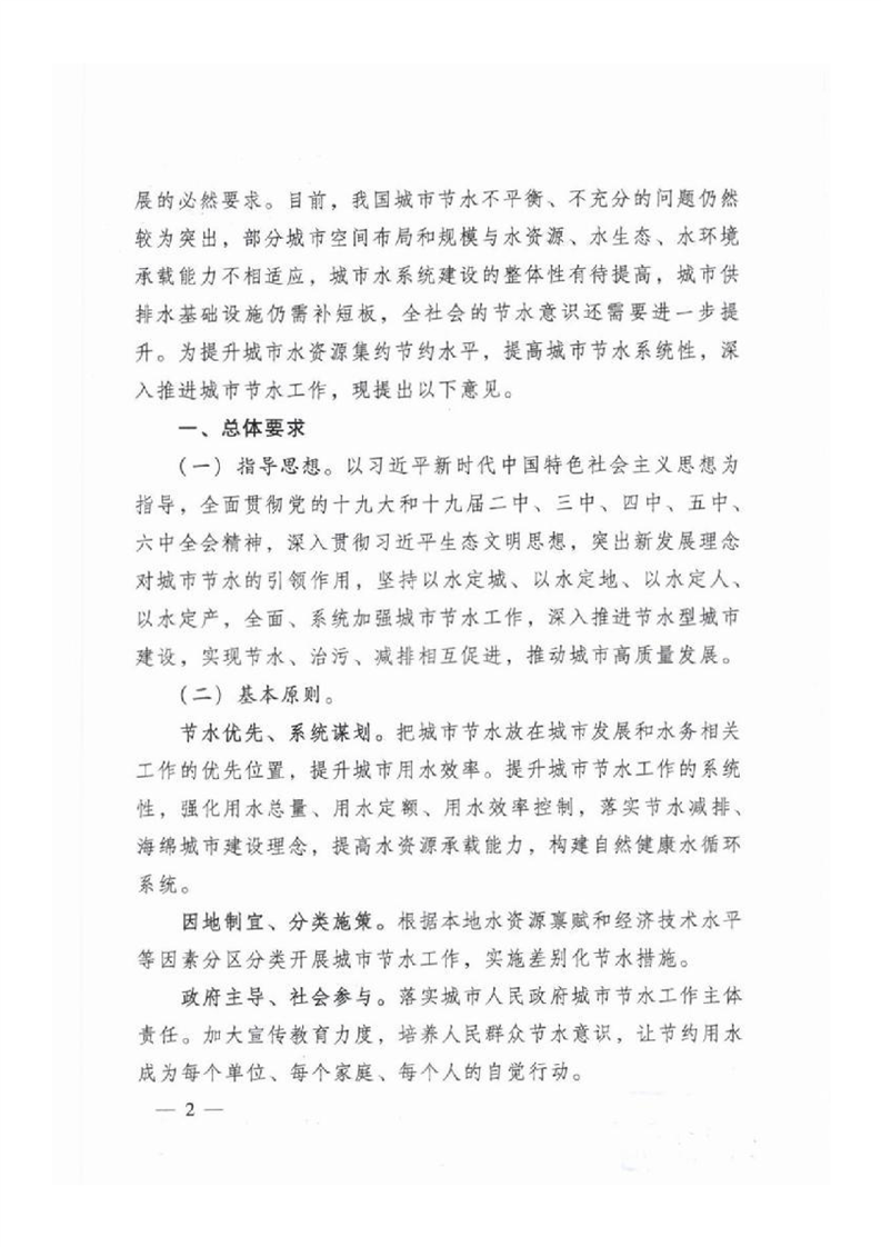 关于加强城市节水工作的指导意见