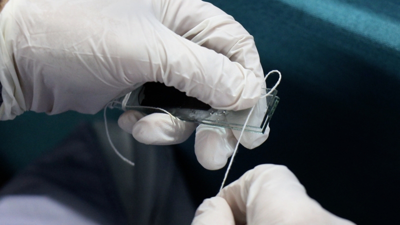 显微镜是修复师的“好助手”。他们用显微镜观察纤维,判断含水量、材质变化、微生物附着情况,在特制溶液中进行消毒,再用毫针调整形态。